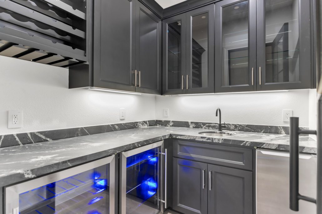 The open family room, complete with a fireplace, provides a warm and inviting atmosphere for time with loved ones. The primary bedroom is a true retreat with walk-in closets featuring custom built-ins and an attached exercise room. Additional luxurious amenities include a dedicated TV room, a bar room for entertaining guests, and even a specialized dog room for your furry friends.