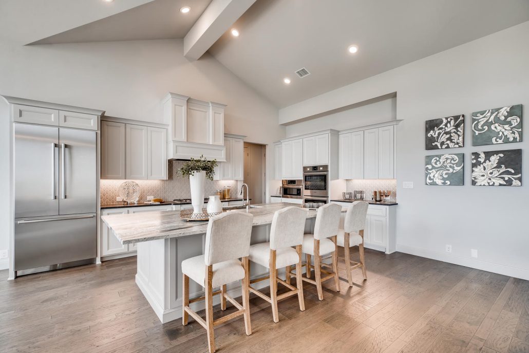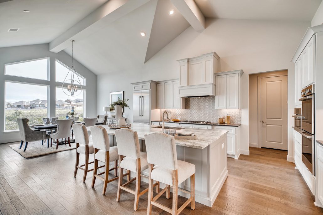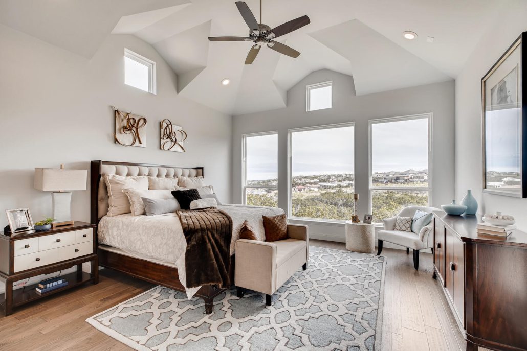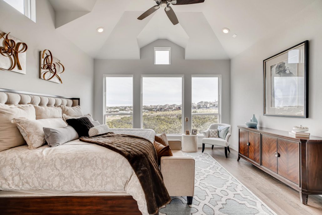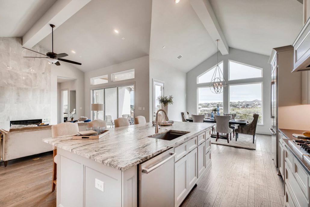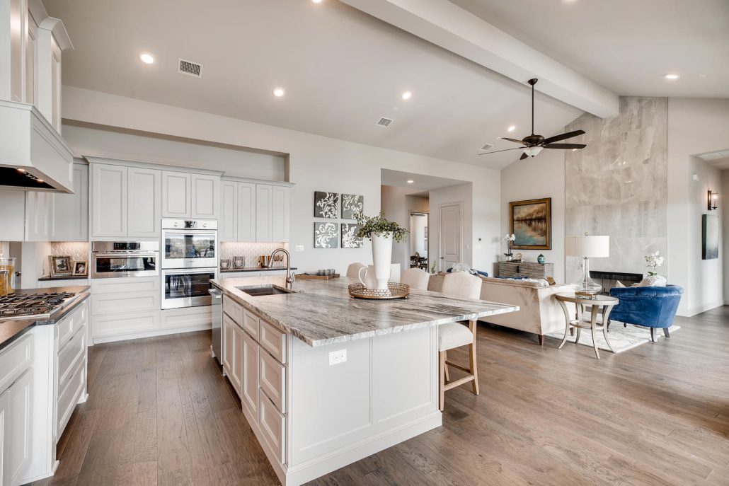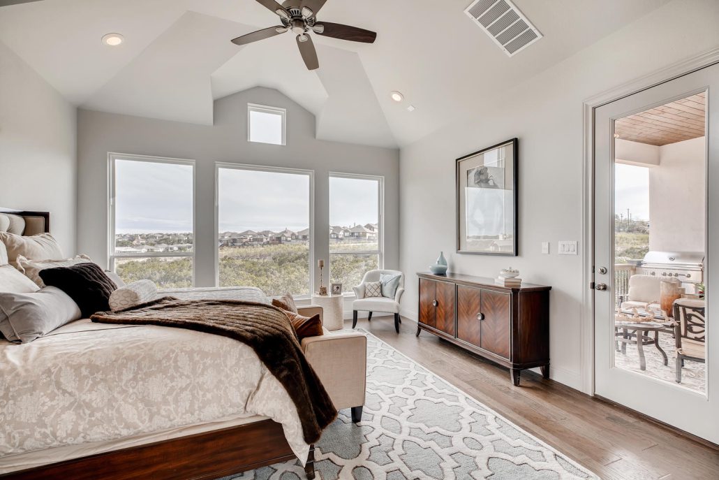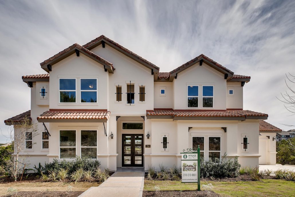 Gorgeous views in Stone Oak in this masterfully built home by McNair Custom Homes. Sitting high atop the gated neighborhood of Hidden Canyon, this five bedroom, five bath home features the quality and legendary energy efficiency you know and expect. The views throughout this home are accentuated by large windows and open spaces. Family room with floor to ceiling marble wall along the fireplace that looks stunning in the natural light. Modern island kitchen with stainless steel and gorgeous granite.